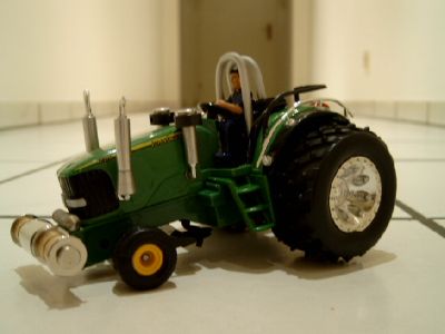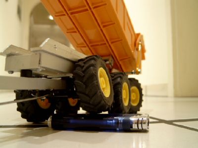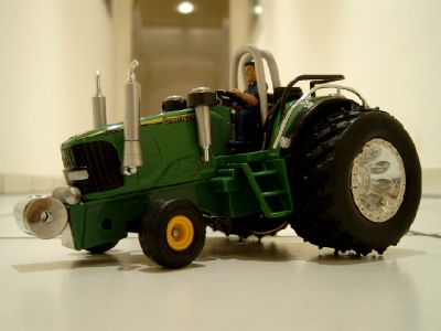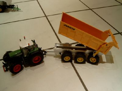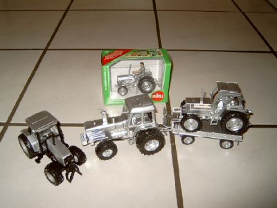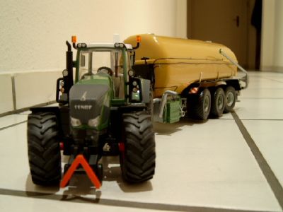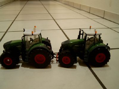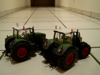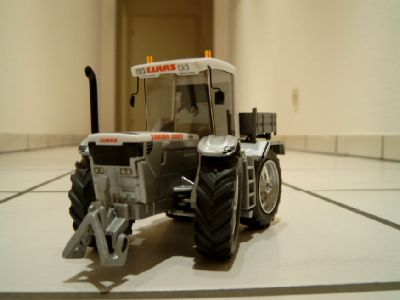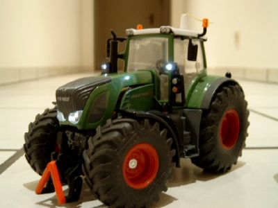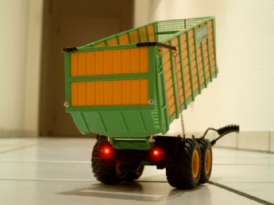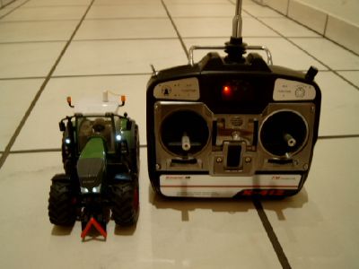 Also am Anfang stand ein ganz normales Siku Modell das durch den Einbau einer RC Anlage kompett auf Fernsteurung mit einem Sender nun gesteuert werden kann.Der Aufwand ist nicht unerheblich das das komplette Innenleben mit der Fräse bearbeitet werden muß, außerdem wird der Einbau zum Spießruten Lauf was die Kabel betrtifft da jeder mm genauestens abgemenssen sein muß und bei zu großen Kabel nachher nichts mehr in das Modell passt. Es sind verbaut Antrieb mit Fahrtregler Lenkservo mit Metallgetriebe . Zweites Servo für die Heckhydraulik ein Memory Modul mit dem ich die Lampen steuern kann so wie Accu, Emfänger, Schalter und diverse verstrebungen.Desweiteren sind in der Kabine Zusatz Scheinwerfer eingebaut die mit dem Fahrtlicht zusammen geschalte werden können. Äuserlich ist das Modell nicht von einem Handelsüblichen Modell zu unterscheiden wenn man mal die kurze Antenne auf dem Dach außer acht läßt . Aber die ineren Werte zählen und die sind vom feinsten was der momentane Markt hergibt. Hier nun die ersten Bilder. Als nächtes wird ein neues Modell mit den gleichen Komponenten ausgerüstet nur kommt das Sound Modul noch hinzu das über ien mehrfach Modul mit allerlei verschienden Sounds zu bestücken ist , wie Hupe, Anlasser ,Fahrgeräusch ,Brensen und Luftdruckregelung. Außerdem wird ein Rückfahrwarner bei zurückfahren so wie die Rückfahrscheinwerfer automatisch betätigt. Die Zugkraft gegenüber einem normalen SC Fahrezug ist um ca. 20% gesteigert was sich in der Zukrafr beim Fahren mit zwei Anhängern so wie beim Plügen so wie sonstigen Arbeiten auszeichnet. Da die neue Technik mit den Glasfaseren vielverspreichend ist werde ich auch die nächsten Modelle damit ausrüsten. Es läßt sich um einiges besser auf kleistem Raum mit den Fasern arbeiten außerdem entfällt die lästeige Löterei der einzelnen LEDs und ich kan an den unmöglichsten stellen eien Lampe einbauen.