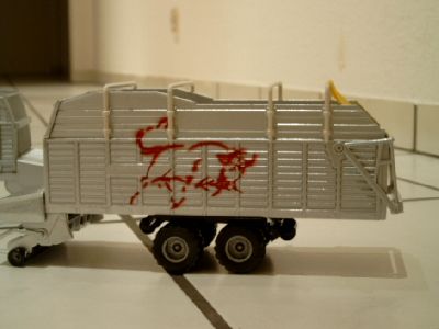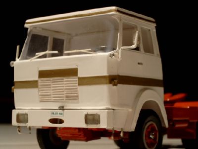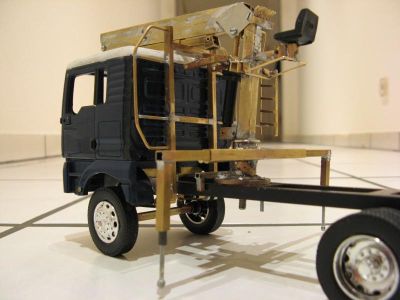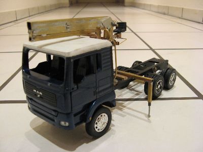 Der Kran zusammengelegt über dem Führerhaus . Auch gut zu sehen das neu angefertigte Dach.