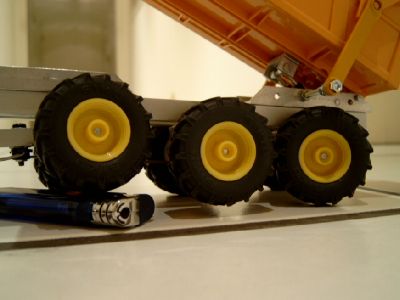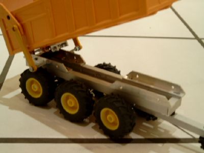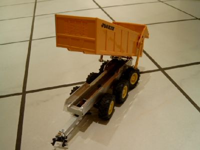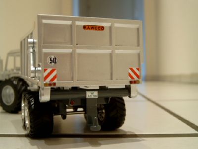 Der Kipper mit den Lenkachsen und der Deichslanlenkung.