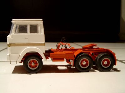 Neuvorstellung auf der Traktorado in Husum ein komplett Handgefertigtes Modell eines LKW Modells das es in den 70. Jahren auf unseren Straßen heufig zu sehen gab aber mitlerweile entweder dem Schneidbrenner oder der Schrott Presse zum Opfer fiel. Ein Henschel F 221 Zugmaschine wie sie damals auf unsren Straßen allgegenwärtig war ob im Baugeschäft oder Spedition die Kasseler Firma Henschel hatte viele Varianten dieses Fahrzeuges auf unseren Straßen. Ich habe mich entschieden hier nun ein Fahrzeug der Schwere Klasse also entweder als Baukipper oder Sattelzugmaschiene zu bauen das Fahrzeug besitzet voll ausgestadte Kabiene so wie komplett gefertigten Rahnen so wie die Federpakete mit Bolzen und Büchsen. Auch7 Blatt Tandem Pendelachse am Heck. Farbe und Aufbau sind bis jetzt noch nicht genau definiert ergibt sich aber beim Bau. Bilder Folgen. Hier ein Original Bild!