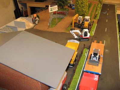 Hier sieht man nur einen kleinen Ausschnitt aus seinem Diorama es stellt eine Gartenbau Firma da die einen neuen Mini bagger gelieferte bekommt.