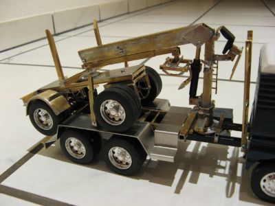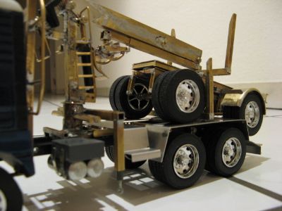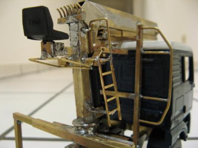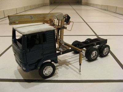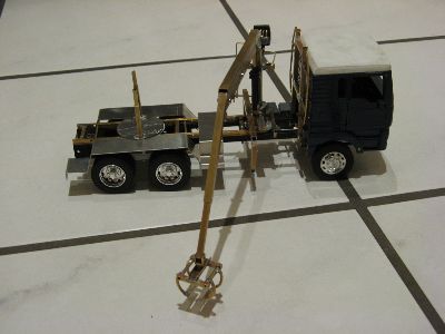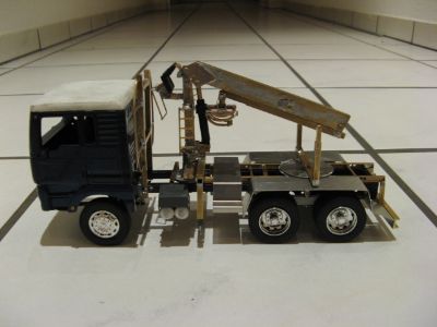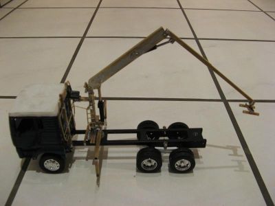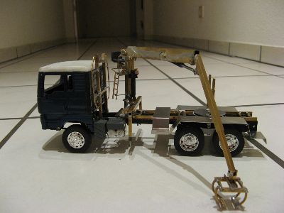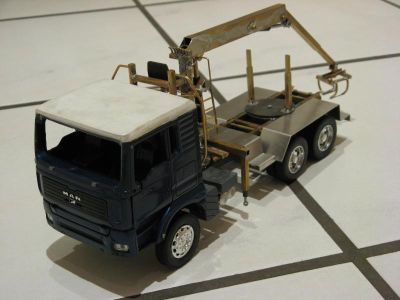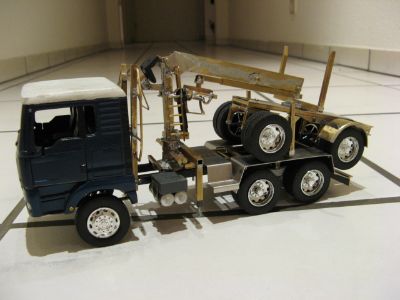 Als neuestes Projekt Arbeite ich an einem Holztransporter für Langholz. Es entsteht ein Dreiachser MAN mit Kran aufbau so wie den dazugehörigen Anhänger. Da es äußerst schwierig ist in 1:32 geeignete Komponenten zu finden blieb nur wieder mal der Bau sämtlicher Teile übrig. Außer das Führerhaus das habe ich nicht selbst gebaut nur dem Original angeglichen. Dafür musste das Hochdach und die Hälfte der Türen entfernt werden Der Rahmen so wie der komplette aufbau muss neu erstellt werden.Der komplette Kran ist nach Bildern in 1:32 aus Messing gelötet und soweit ich das laut meiner Bilder sehen kann bis auf den Greifer und die Stützplatten der Ausfahrbaren Stützen fertig. Nun beginn die Arbeit am Anhänger so wie der vielen klein teile die das Modell noch komplettieren soll .Jedes Einzelteil des Krans ist in mühevoller Arbeit aus Messing hergestellt un dann zusammen gebaut worden. Die weiteren Bauabschnitte gibt es natürlich auch zu sehen.