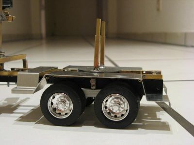 Hier nun wieder ein Schritt weiter . Die neuen Teile sind an Ort und Stelle. Greifer Kotflügel Auspufftopf Batterie Kasten mit Druckluft Behälter .
