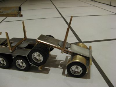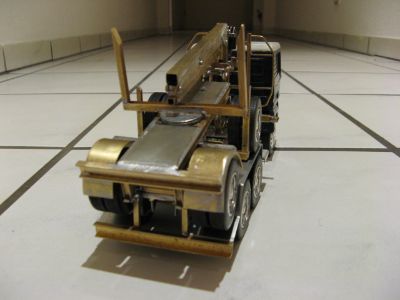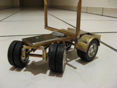 Der Nachläufer komplett wieder aus Messing gebaut und gefedert. Die Kotflügel sind Hand getrieben und auch dementsprechend Gebördelt.