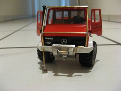 Hier einige neun Bilder von einem Unimog in Forstausrüstung. Das Fahrzeug wurde komplett umgebaut Lenkung, Unterfahrschutz mit Seilwinde Dachträger mit Lenkung und Versteifung für die Rückwand wurden aus Messing angefertigt Unterfahrschutz sowie das Rückeschild am Heck sind aus Neusilber Kupplungen sind funktionstüchtig so wie die Seilwinde die neu gefertigt wurde. Die Räder wurden von schmal auf Forstbereifung umgebaut. Die Achsen wurden eben falls auf die neuen Räder angepasst. Hier nun die Bilder.