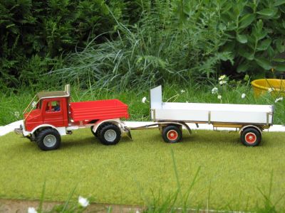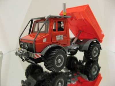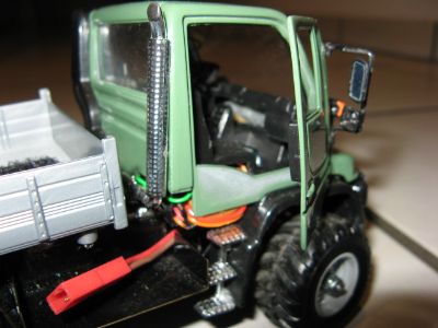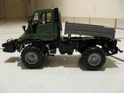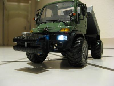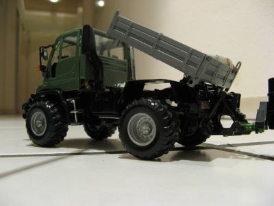 Hier die Bilder vom Unimog U 400 als Rc Versoin in 1:32 ( Funktionen Federung,autentisch Antrieb, Lenkung, Kipper und Heckhydraulik so wie Beleutung und Bremslichter.