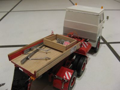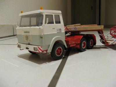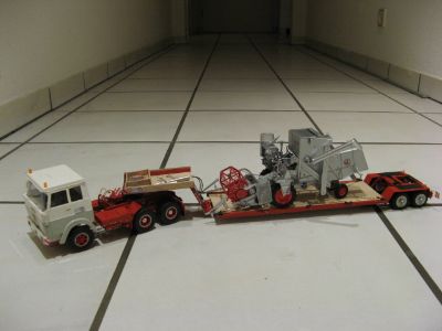 Das sind die neuesten Bilder die es gibt, Heschel mit fertigem Tieflader und Fracht sowie IHC Traktor ebenfals fertig gestellt der Range Rover wartet nur noch auf seine Nummerschilder . Der Unimog ist ebenfalls fertig und kommt die Tage hier her.
