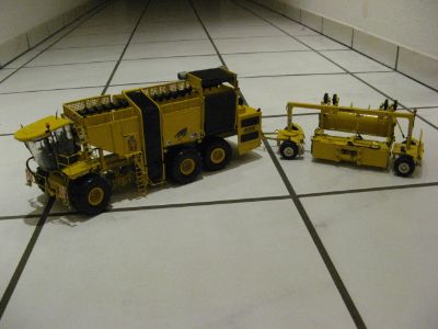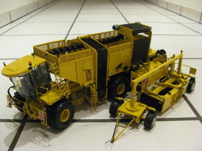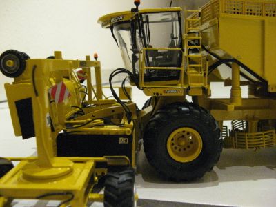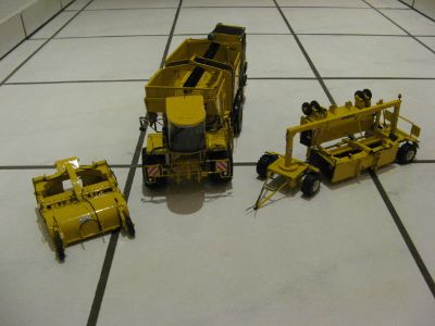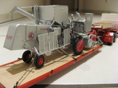 Das Modell ist weitgehend authentisch in Messing neu gebaut und wird viele funktionen beinhalten wie denmontage des Köpfers Stoßstange mit Beleuchtung Anhänger mit funktionierender Verriegelung der Köpfereinheit diese ist klappbar gestaltet Leitern die sich bewegen lassen Lenkung Hubzylinder für den Klappmechanismuss Federung des Anhänger Und vieles mehr. lasst euch überraschen wie das fertige Modell aussieht. Hier ein Bild des Originals.