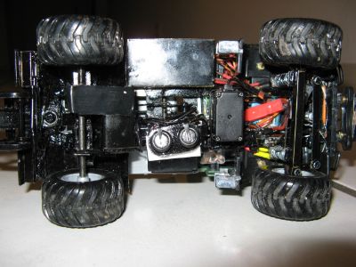 Die gesamten RC Einbauten mit Federung und Steuerung.